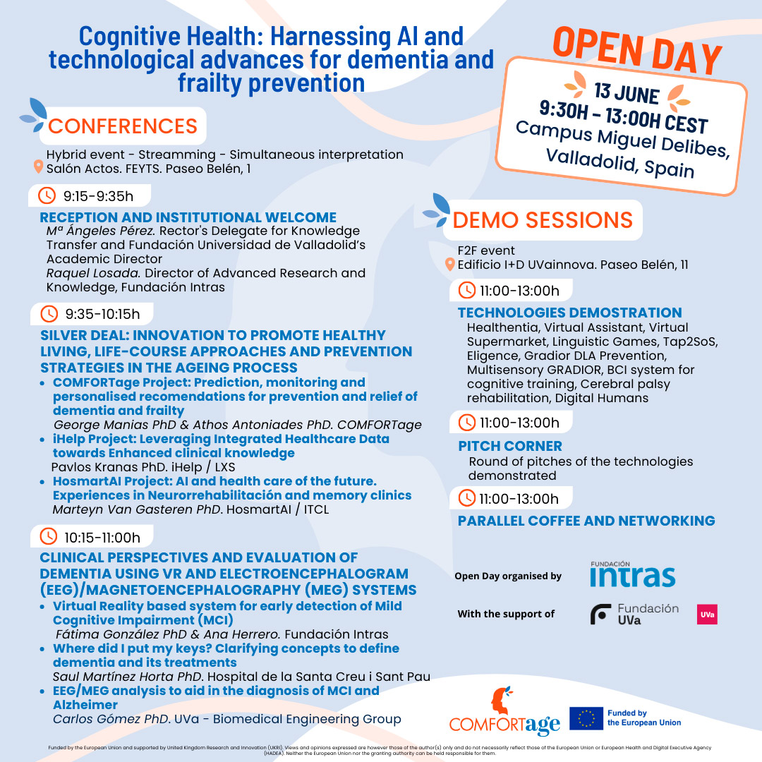 COMFORTage (Prediction, Monitoring and Personalized Recommendations for Prevention and Relief of Dementia and Frailty) is a Horizon Europe´s project which fosters solutions for frailty and dementia.